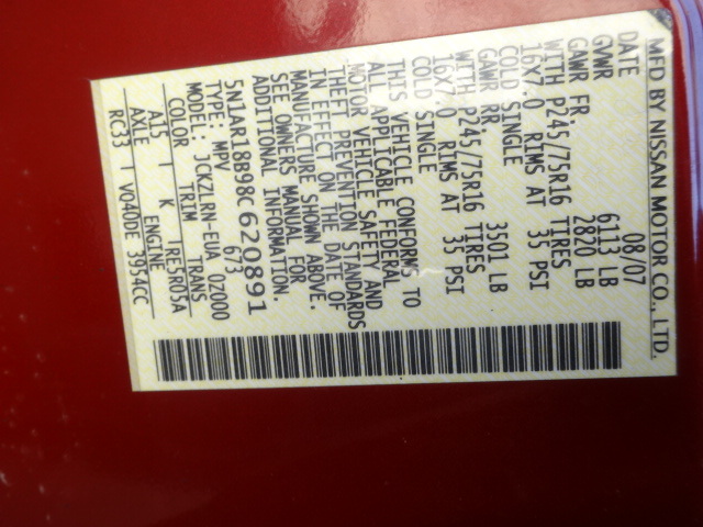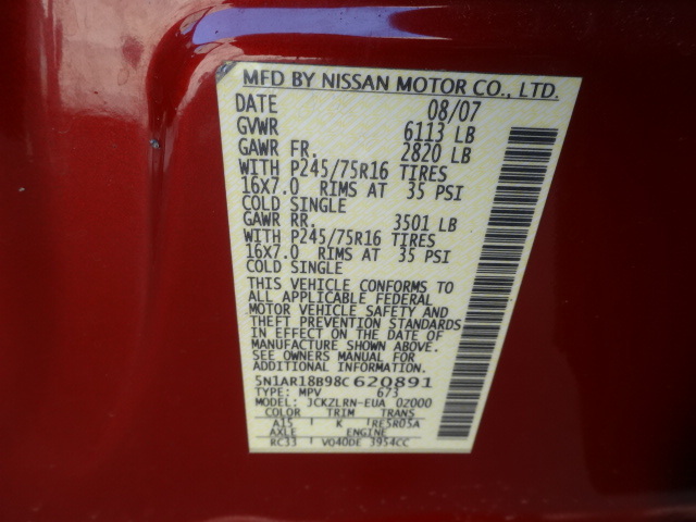 • VIN: 5N1AR18B98C620891