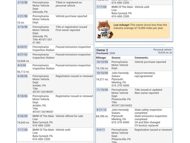 We often use these services to check a vehicles background.  Carfax and Autocheck are wonderful services,  but they have their limitations.  Many times they will show more “owners” than we may state a vehicle has had.  This is because they are an information service only.  They have never seen the car, owned the car,  and have no other information about the car than what is reported from different agencies.  All of this information is originally hand entered into their databases at their source and mistakes and inconsistencies will occur !  For example when a dealer such as ourselves purchases a vehicle they may pick it up as a new owner when this is of course not the case as dealers are not end users.  Also they often contain mileage errors and inconsistencies that appear to make little sense.  Just like any computer generated information report you need to know how to read the report & when to read between the lines. Having seen thousands of these over the years we can help you understand the information listed in these reports,  just ask.