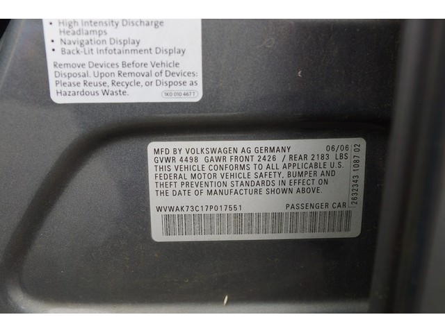 VIN: WVWAK73C17P017551   Interior Color: Gray