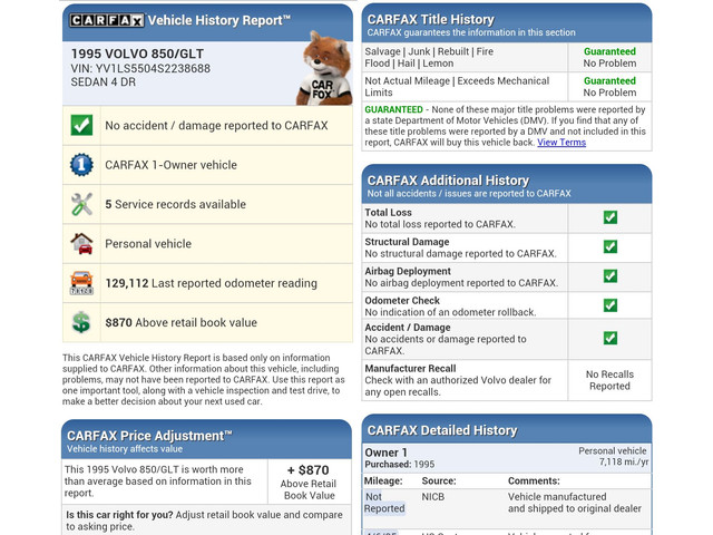 1995 VOLVO 850 GLT ONE OWNER NICE GREAT CONDITION LOADED RUNS GREAT WOW!!!