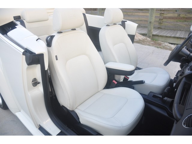 This VW Beetle Convertible is a fun and great car, totally reliable and ready for cruising on the beach or commuting back and forth to work!  6 speed Automatic transmission and a powerful 150 hp motor  perform as they should with no problems. Paint looks very nice except for 1 scratch on the drivers side :( Otherwise paint appears to be original and in great shape!   Interior - the white leather seats and black carpet with floor mats are clean and have no rips or holes. ( Also includes OEM VW rubber floormats)