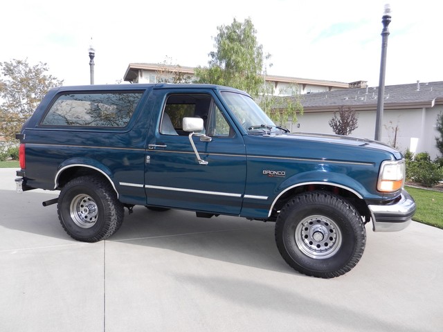 Gorgeous 1994 Ford Bronco XLT. Dark Tourmaline Metallic (green, code NA). 155,082 miles. Clear title and history. Straight body, solid, NO rust. New Paint. All Power. A/C blows ice cold. Passed CA smog with flying colors. All around Air Shocks. Drives beautifully.