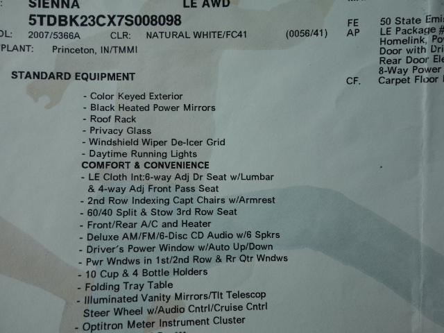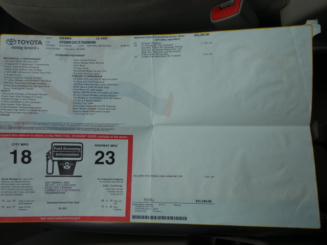 NO RESERVE AUCTION HIGHEST BIDDER TAKES THE 2007 TOYOTA SIENNA LE FWD HOME!