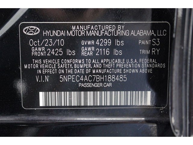 If you want an amazing deal on an amazing car that will not break your pocket book, then take a look at this gas-saving 2011 Hyundai Sonata. This Sonata is nicely equipped with features such as Sonata Limited, 4D Sedan, 4 cyl 2.4L DGI DOHC, 6-Speed Automatic with Shiftronic, Black w/Leather Seating Surfaces, ABS brakes, Alloy wheels, Anti-Lock Braking System (ABS), Audio Controls, Auto-dimming Rear-View mirror, Automatic temperature control, Cruise Control, Dual front impact airbags, Dual front side impact airbags, Electronic Stability Control, Front dual zone A/C, Heated door mirrors, Heated front seats, Heated Mirrors, Heated rear seats, Illuminated entry, Leather Seating Surfaces, Leather steering wheel, Leather-Wrapped Steering Wheel & Shift Knob, Low tire pressure warning, Occupant sensing airbag, Overhead airbag, Power driver seat, Power Tilt-&-Slide Glass Sunroof, Power Windows, Radio: Autonet AM/FM/XM/6-Disc CD Changer/MP3, Remote keyless entry, Remote Keyless Entry & Alarm, Tilt & Telescopic Steering Wheel, Tire Pressure Monitoring System, Traction control, Traction Control System, and XM Satellite Radio. Ranked among the top 3 Affordable Midsize Cars for 2010 by U.S. News. Ergonomic knobs and buttons abound.