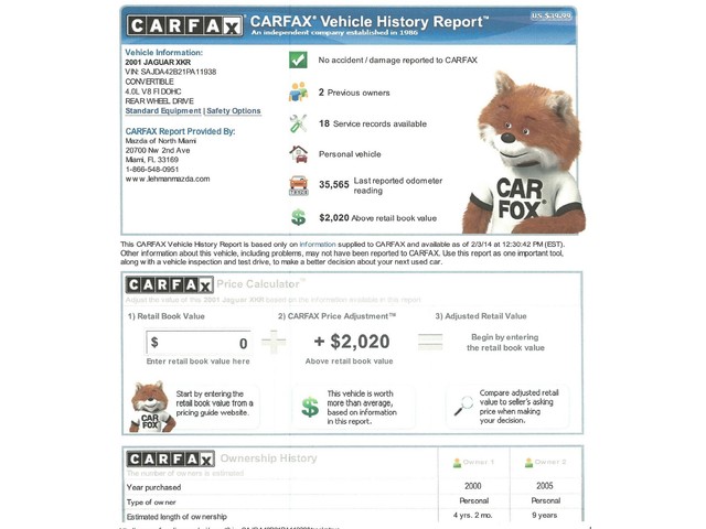 2001 XKR CONVERTIBLE SUPERCHARED CARFAX CERTIFIED ONLY 35K ORIGINAL FLORIDA MILE