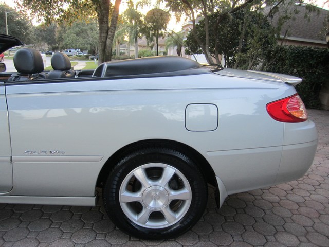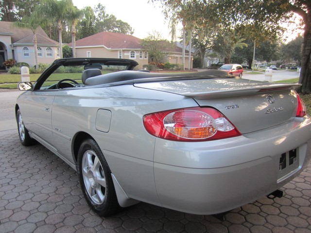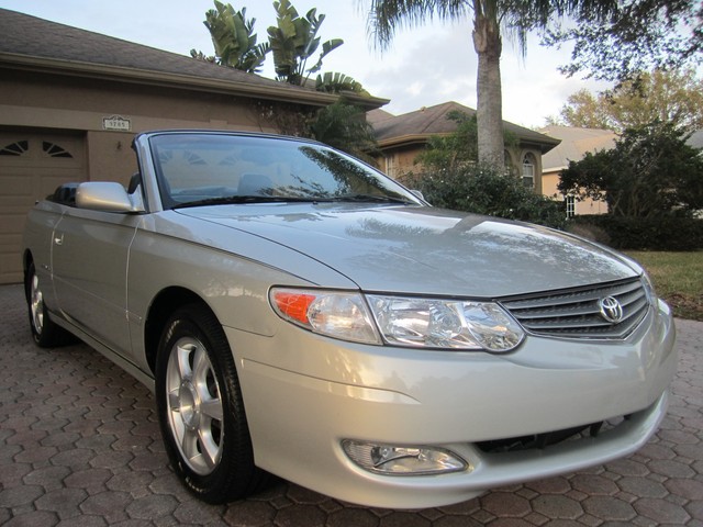 **********************PLEASE WATCH THE VIDEO AT THE END OF THIS DESCRIPTION AND TAKE A LOOK AT ALL THE PICTURES....THIS IS A GORGEOUS TOYOTA SOLARA SLE CONVERTIBLE, THAT YOU WILL JUST LOVE, VERY DEPENDABLE, AND RELIABLE, AND SAFE, THESE TOYOTA SOLARA'S ARE ONE OF THE BEST CONVERTIBLES OUT THERE. THIS ONE HAS ALWAYS BEEN VERY WELL TAKEN CARE OF, ELDERLY ONE-OWNER (ALL SERVICE RECORDS FROM DAY ONE, ARE DOCUMENTED AND WRITTEN DOWN BY THE ORIGINAL OWNER SINCE BRAND NEW TO THE PRESENT DATE), YOU WONT FIND ONE THAT HAS BEEN TAKEN CARE OF ANY BETTER, AND IT IS IMMACULATE INSIDE AND OUT...THE INTERIOR IS IN EXCELLENT CONDITION, NON-SMOKER, AND LOOKS LIKE IT HAS NEVER EVEN BEEN EATEN IN, OR CUSSED IN, IT IS LIKE NEW...IT HAS SOME OF THE MOST COMFORTABLE LEATHER SEATS THAT YOU WILL EVER SIT IN, WITH DRIVER'S POWER SEAT AND BACK LUMBAR SUPPORT...HAS THE UPGRADED "JBL" STEREO SYSTEM...6-DISC CHANGER, AND EVEN A CASS PLAYER...WOODGRAIN THAT IS PERFECT...HOME-LINK...AUTO DIMMING REAR-VIEW MIRROR...TRACTION CONTROL...POWER WINDOWS AND LOCKS, TILT, CRUISE...LEATHER STEERING WHEEL...SIDE AIR-BAGS...IT IS LOADED WITH ALL THE OPTIONS. IT EVEN HAS THE "TOYOTA GUARD PROTECTION" ON IT THAT GIVES YOU THE PAINT SEALANT, LEATHER SEALANT, AND UNDER-COATING AND SOUND GUARD, FACTORY PAINTED MUDGUARDS. THE EXTERIOR OF IT IS ALSO IN EXCELLENT CONDITION, THE BEAUTIFUL SILVER FACTORY PAINT LOOKS AND SHINES LIKE NEW WITH VERY LITTLE WEAR WHATSOEVER. THE POLISHED ALLOY WHEELS AND TIRES ARE LIKE BRAND NEW, THE BRAKES ARE GREAT, AND IT NEEDS NOTHING, THESE 3.0 LITERS ARE ONE OF THE MOST RELIABLE MOTORS TOYOTA EVER MADE, AND THEY GET GREAT GAS MILEAGE, AND RIDE AND HANDLE AS NICE AS ANYTHING YOU WOULD WANT, THIS SOLARA DRIVES FANTASTIC, YOU WILL LOVE IT. YOU WILL GET ALL THE BOOKS AND MANUALS AND TWO KEYS, ONE VALET AND FOB, ALL THE TOYOTA CARPETED FLOOR MATS, AND IT EVEN HAS THE CONVERTIBLE BOOT FOR THE BACK OF IT, AND A "BRA' FOR THE FRONT OF IT IF YOU WANT TO PUT IT ON. FULL SIZE SPARE TIRE. FOLKS IF YOU ARE LOOKING FOR A GREAT CONVERTIBLE YOU HAVE FOUND IT, THIS ONE IS VERY VERY NICE AND THE NEW OWNER WILL BE JUST AMAZED AT HOW NICE IT IS.**********PLEASE WATCH THE VIDEO AT THE END OF THIS DESCRIPTION AND TAKE A LOOK AT ALL THE PICTURES, AND IF YOU HAVE ANY QUESTIONS PLEASE CALL US AT 727-460-4283 FOR JACK OR CAROL AT 727-798-7161 OR EMAIL US, MAY HAVE A LITTLE MORE MILES ON IT BY THE END OF THE AUCTION. THANK YOU GOD BLESS YOU AND HAVE A FANTASTIC DAY. WE APPRECIATE YOU AND LOOK FORWARD TO DOING BUSINESS WITH YOU, CONGRATULATIONS ON FINDING THIS "DIVIND FIND"...