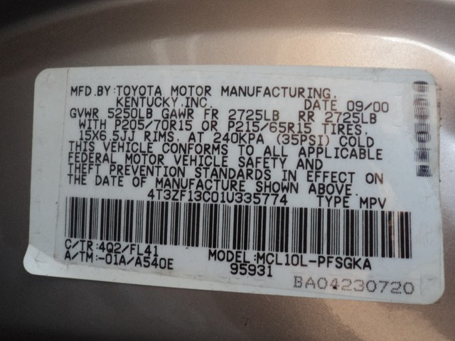 • VIN: 4T3ZF13C01U335774