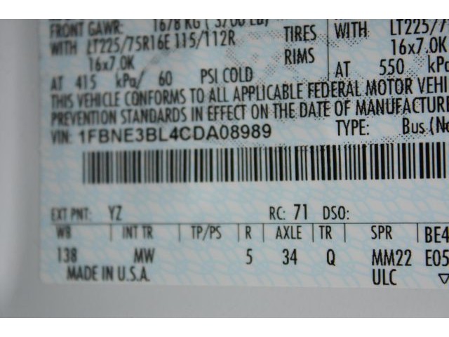 12 Ford E350 Handicap Accessible Wheelchair Van Braun Lift Raised Roof Warranty