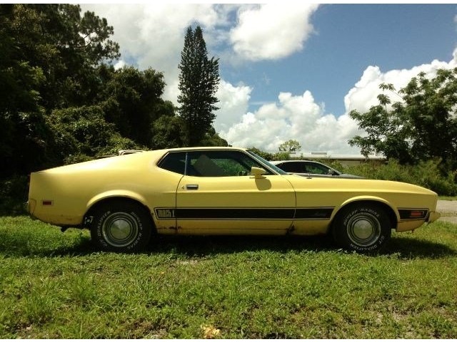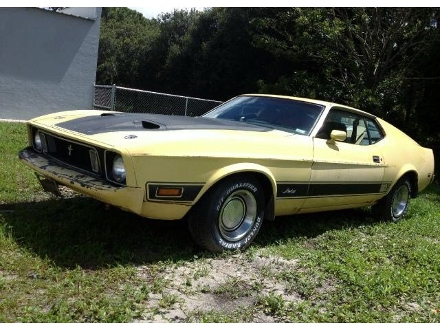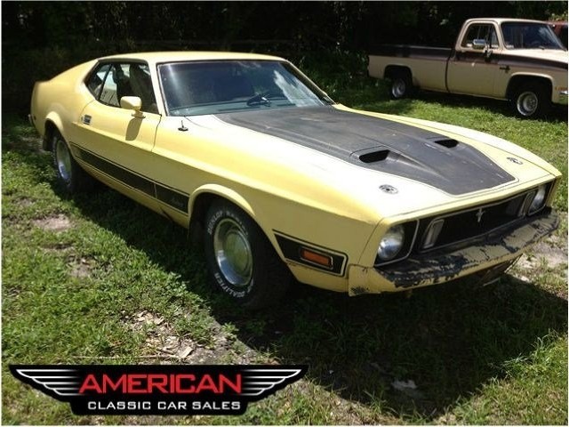 ALL original 1973 Mach 1 Barn Find. This is the a real matching #'s 351 Cleveland Mach 1 with air conditioning, power steering and power brakes. The body is very nice and solid except for a few spots near the rear tires and trunk pan. we have $800 worth of new body parts. Once these are installed the body will be very good. these parts are lower rear 1/4's trunk pan and other misc parts. the trunk leaked at one time and there is rust in only this section of the car otherwise the entire body is all original and rust free with original paint still on it. It runs great shifts nice and the brakes work great.  We are installing a new gas tank while this auction is running. It can be used as driver while you restore or just restore the car from here. Great starting point on a great original muscle car. The car comes with all new stripe kit.  With only 75k miles, the engine runs great with no internal noises.  Please call for details. 941-928-2339. American Classic Car Sales, Sarasota, FL 34232. We arrange shipping anywhere. www.americanclassiccarsales.com