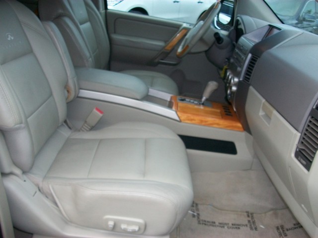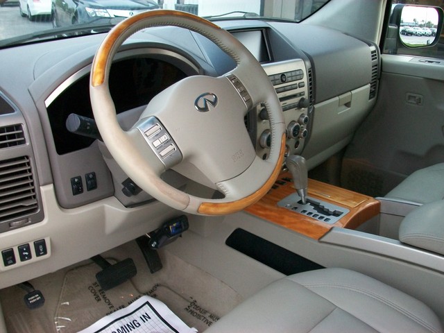 This full size SUV is as big and as luxurious as the Lincoln Navigator or Cadillac Escalade. Bottom line, the QX56 is the most powerful, quietest, most luxurious, most spacious, most completely featured and stylish vehicle in its class. It's also the most utilitarian, boasting the most cargo and towing capacity. If all this sounds too good to be true, for once, it isn't. Check out the equipment list! Everything usually expected in a luxury vehicle is standard, plus a few extras sure to make you smile. Navigation, Backup Camera, Leather Upholstery, Climate Control, and Heated Seats, to keep your backside warm on chilly days, are all on board! The interior is as roomy as the exterior is massive. In almost every measure, the QX bests the Escalade and Navigator. The Infiniti beats the Cadillac and Lincoln by more than three inches in second-row legroom, and in most measurements it beats them by at least an inch. From the driver's seat, the Infiniti QX56 doesn't feel as large as it is. Without a regular check in the rearview mirror, a driver might forget just how much there is back there. No, it's clearly not a car, but neither does it drive like the big body-on-frame truck that it is. Our QX56 is and does everything you'd want a luxury full-size SUV to be and to do. It raises the bar in dimensions and styling, outside and inside, and in power and drivetrain!  If you need any help with some easy financing please let me know.