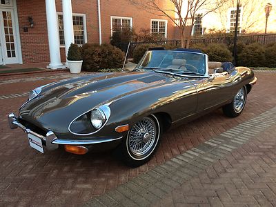 This XKE Roadster is completely original with only 10,440 actual miles. This car has never been modified, molested, re-painted or restored. The original Sable Brown paint shows well and with the desired patina you would hope for on a completely original car. Likewise, the interior with it's original leather beautifully preserved and supple with no rips, no loose seams and no notable marring. The car even still sits on it's factory original tube radial Dunlop SP Sport tires with matching spare that has never seen road! Included with this Jaguar are the original owner identification plate, the original handbooks in their plastic folio, period service manual, the factory original tool roll, lead hammer and wrench for the original knock-off wire wheels. This XKE is in excellent mechanical condition and drives wonderfully. Featured in the Barrett Jackson 11th annual Florida Auction!