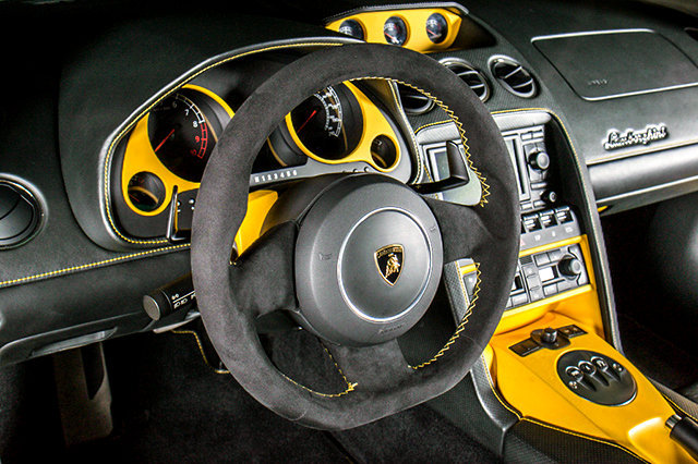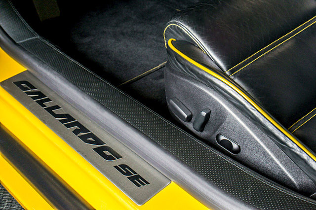 This is a smoke free Carfax certified 2006 Lamborghini Gallardo "SE" coupe equipped with a 5.0L 520HP V10 engine and a 6-speed E-Gear (Paddle shift & auto) transmission. This car is finished in a beautiful Giallo Midas (Pearl Yellow) and Nero Noctis (Gloss Black roof, bonnet, rear tail light louvers, and mirrors) exterior colors and Nero Perseus (Black) full leather interior along with Giallo Taurus (Yellow) door inserts, console, trim, and Yellow contrast stitching and piping throughout.