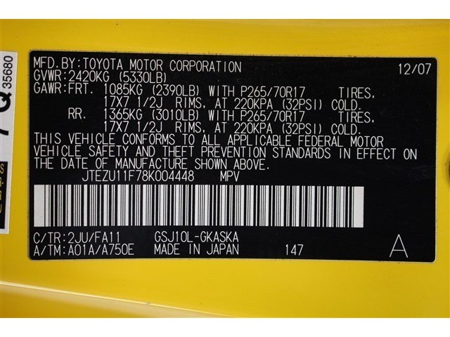 There is no better time than now to buy this great-looking 2008 Toyota FJ Cruiser. J.D. Power and Associates gave the 2008 FJ Cruiser 4.5 out of 5 Power Circles for Overall Dependability. Full of innovative storage solutions that make life easier, you're set to load practically anything that comes your way. It is nicely equipped with features such as 4D Sport Utility, 5-Speed Automatic, Yellow, Dark Charcoal Cloth, 3.73 Axle Ratio, 4-Wheel Disc Brakes, 6 Speakers, ABS brakes, Air Conditioning, AM/FM radio, AM/FM/CD Audio System w/6-Speakers, Brake assist, CD player, Driver door bin, Dual front impact airbags, Dual front side impact airbags, Electronic Stability Control, Fabric Seat Trim, Front anti-roll bar, Front Bucket Seats, Front wheel independent suspension, Illuminated entry, Low tire pressure warning, MP3 decoder, Occupant sensing airbag, Overhead airbag, Passenger door bin, Passenger vanity mirror, Power steering, Power windows, Rear anti-roll bar, Rear window defroster, Speed-sensing steering, Split folding rear seat, Tachometer, Tilt steering wheel, Traction control, Variably intermittent wipers, and Voltmeter.