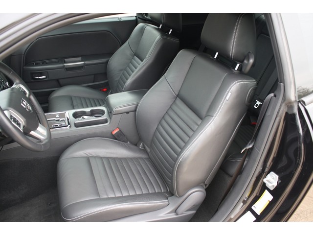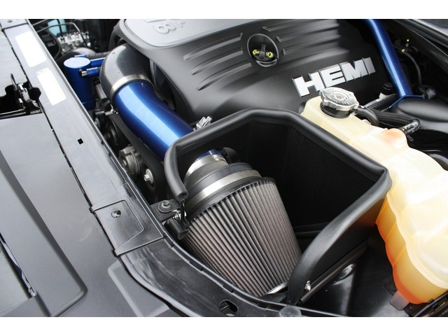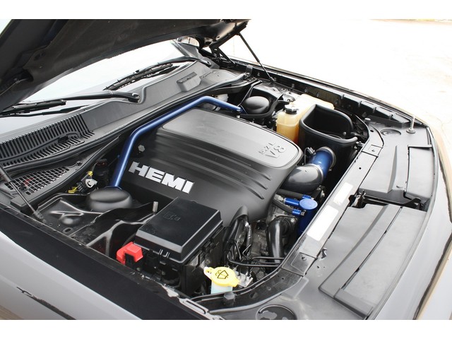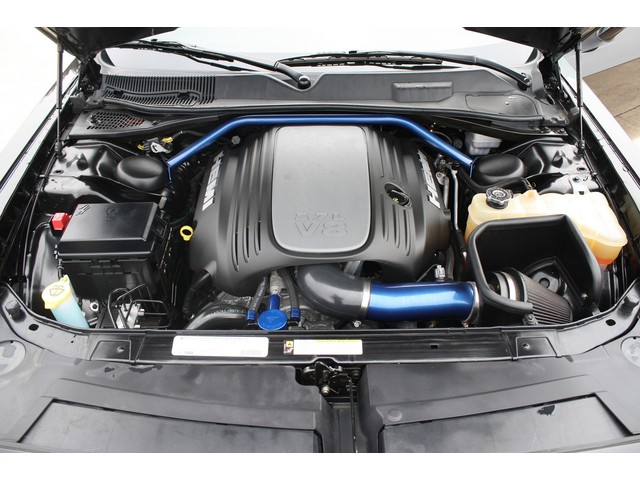 This 2011 Challenger is the peak of cool. With gloss black paint offset by matte black R/T stripes, chrome 20-inch wheels all the way round, MOPAR hood pins and lowering springs this car looks menacing! Add in a little bump in power from the powdercoated intake kit and beautiful-sounding Magnaflow exhaust and it has the sound and power to back up that look!