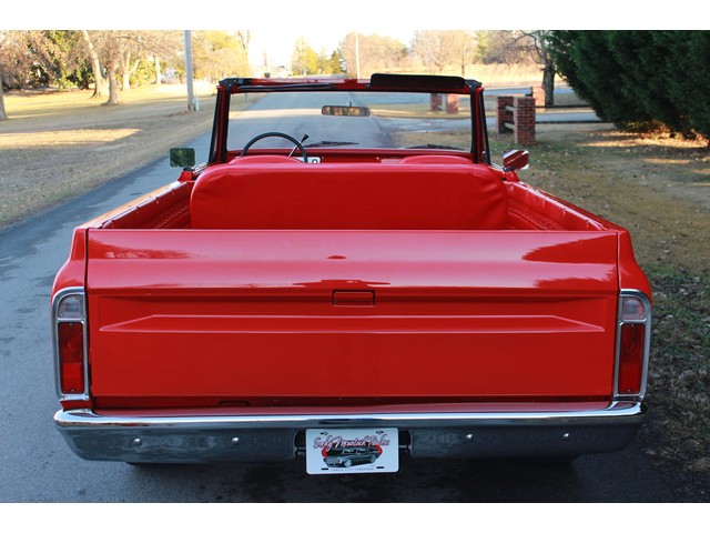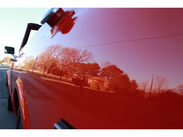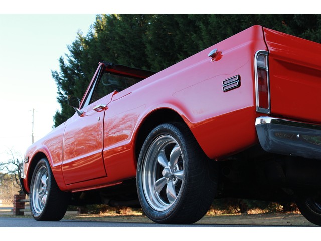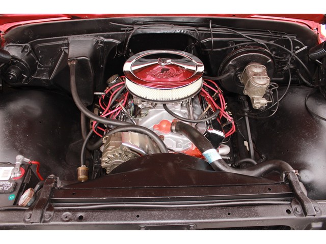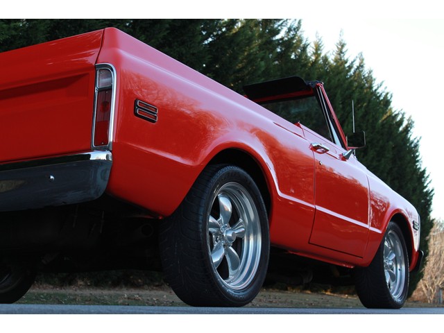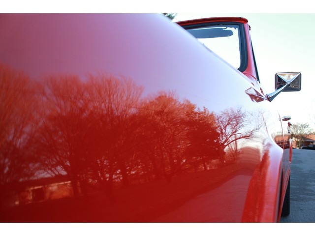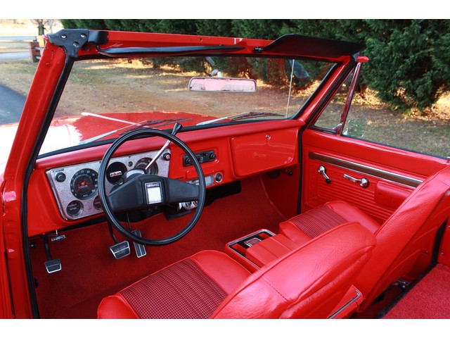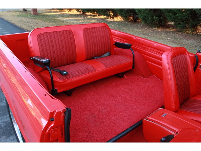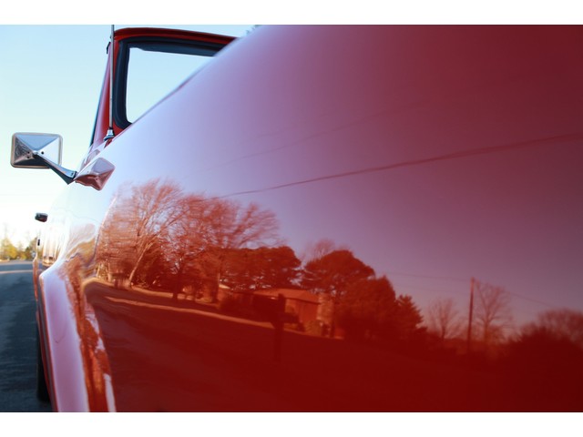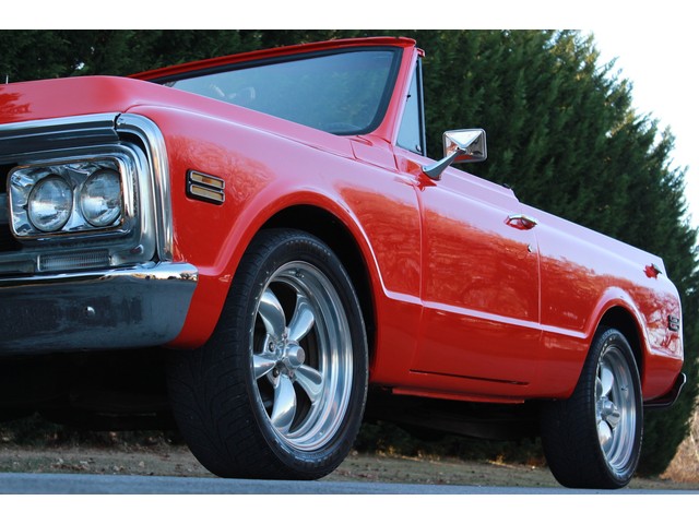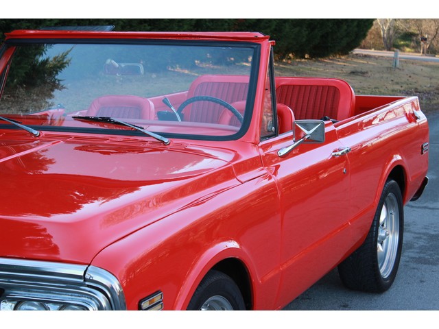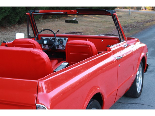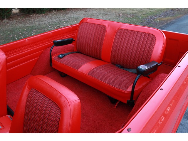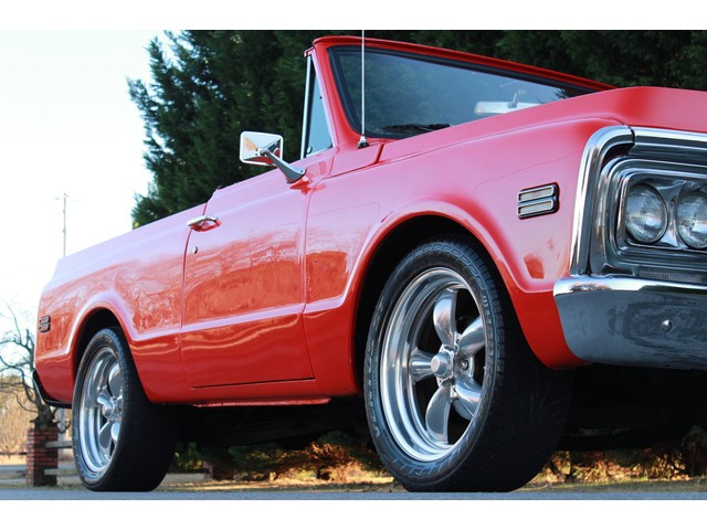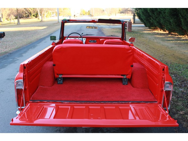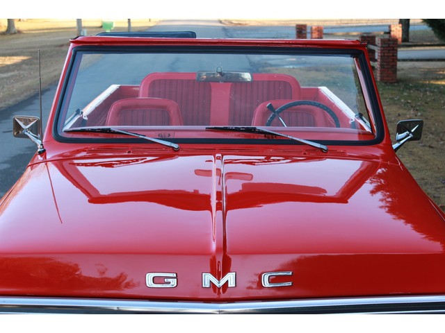 We will start off with the exterior of the Jimmy. It has a straight body with good lines. The fit of the panels is good and everything is covered in the Rally Red Paint that has been buffed and polished to a deep riche shine and is accented by the White top. At the time of the resto new bumpers were installed. The grill as well as other trim looks good and it appears to have had a new windshield and weather stripping installed. The final exterior touch is the set of 20” American Racing Wheels on the corners.