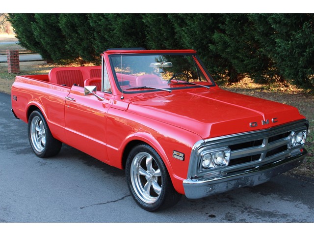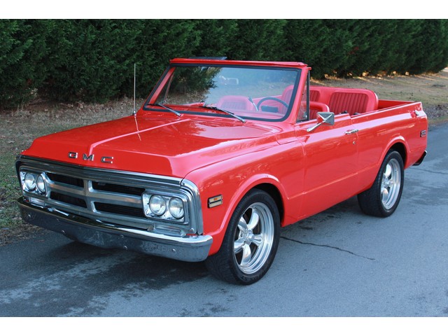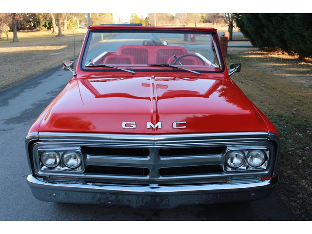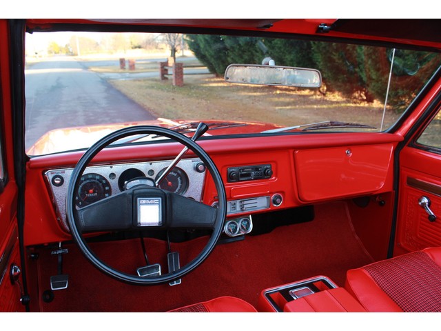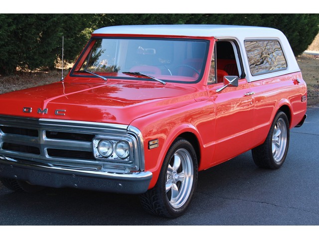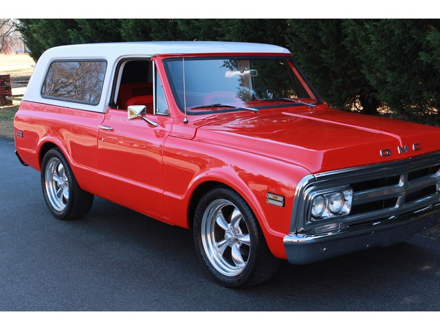 Up for sale we have a 1972 GMC jimmy. In ’70 GMC followed Chevy in the SUV market with the Jimmy. It was offered in a 4WD as well as 2WD. The one we have for you is the hard to find 2WD. It’s done in an eye catching Rally Red with the white top and has had new interior installed. In the paragraphs to follow we will give a brief description of the exterior, interior, and driveline of the GMC, but first we would like to tell you a little about us.