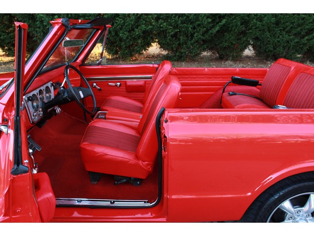 Next, we will take a look at the interior of the ’72. As we said it has been redone with all new seats that are done in the red Houndstooth with the correct buckets and the mini console. The back seat also looks correct. The carpet and door panels are also new with the whole interior theme providing the perfect look to pull the exterior together. When you look at the dash it’s correct with only an upgrade to the radio.