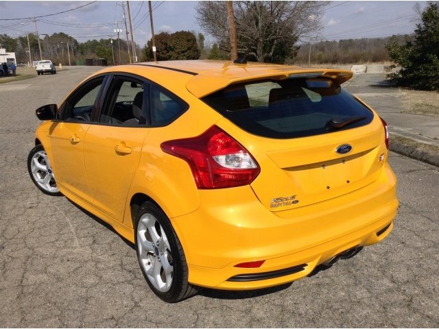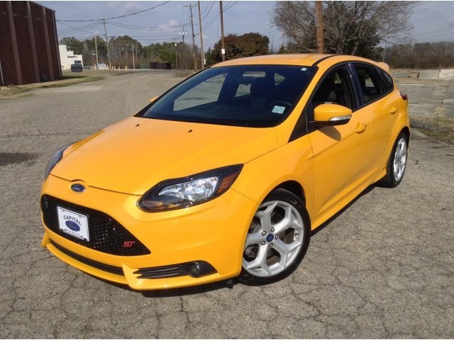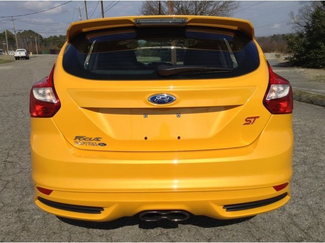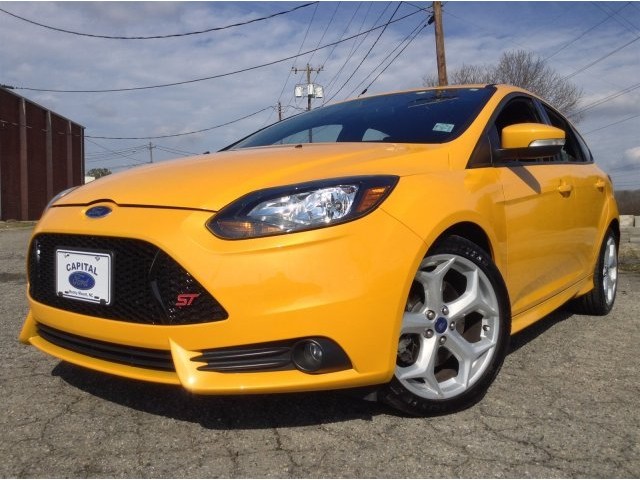 Passionate enthusiasts wanted for this sleek and powerful 2013 Ford Focus ST. Take pleasure in the silky smooth shifting from the Manual transmission paired with this high output Turbocharged Gas I4 2.0L/122 engine. Boasting a mind-blowing amount of torque, this vehicle needs a serious driver! It is stocked with these options: Front/rear floor mats, Leather-wrapped steering wheel, Tilt/telescopic steering column, Anti-lock brakes (ABS), MyKey system -inc: top speed limiter, audio volume limiter, early low fuel warning, programmable sound chimes, Belt Minder w/audio mute, Cloth front bucket seats, Body-color pwr mirrors -inc: integrated turn signals, spotter mirrors, illuminated entry lamps, Unique ST sport suspension, Body kit w/lower valances & rocker moldings, Leather shifter -inc: red stitching. Find excuses for road trips in this lively and whimsical Focus.A short visit to Capital Ford of Rocky Mount located at 2012 Stone Rose Dr., Rocky Mount, NC 27804 can get you a hassle free deal on this dependable Focus today!
