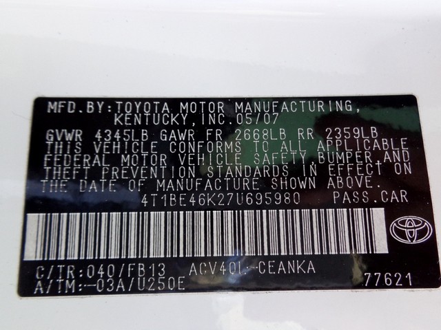 • VIN: 4T1BE46K27U695980
