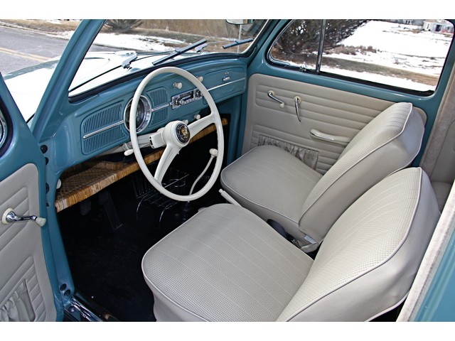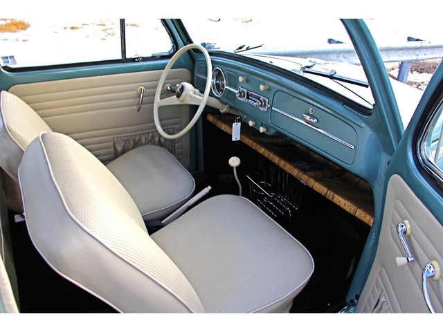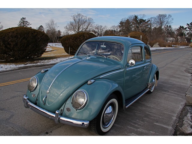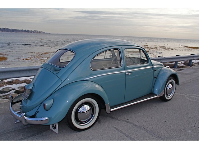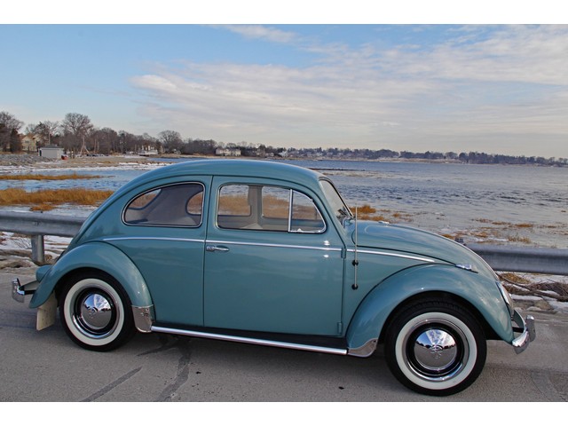 The Classic Car Gallery is proud to offer this beautifully restored 1960 Volkswagen Beetle. Restored by CHRIS VALLONE OF CLASSIC VW BUGS, in New York. “MINTY” features her original 1400cc air cooled engine mated to her 4-speed manual transmission. She is certainly one of the nicest looking bugs that we have seen. Sporting 2 stage, base coat/clear coat paint, her MINT GREEN exterior has great luster and shine. All chrome was redone at the time of the restoration as well. Her correct original convex chrome hubcaps are in excellent shape, they are shod with Mastercraft Metric radial whitewall tires with plenty of tread. They give a great period look while offering modern road holding and handling. The white interior was also reupholstered with great attention to detail. New Vinyl adorns the seats and door cards while her headliner and pillars are wrapped in mohair (read expensive $$$) giving a polished rich look. Unique to this bug, the interior features a wicker shelf located below the existing dash which gives the car cute touch. Bid with confidence, as you can own this special little bug for a fraction of the restoration cost. She has a clear California title, and is registered as a 1960 (often happened back in the day). She is reliable, well sorted, and needs nothing but an enthusiastic new owner! Feel free to call 203 256 9800 or email Steven@classiccargallery.com if we can answer any of your questions.