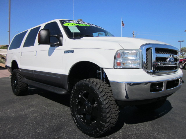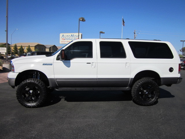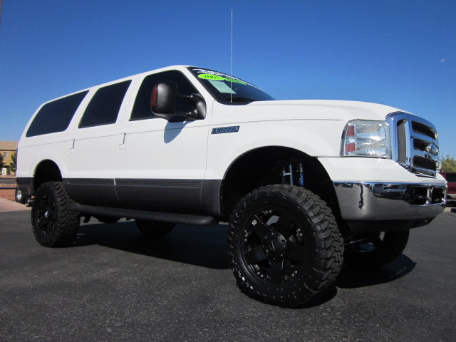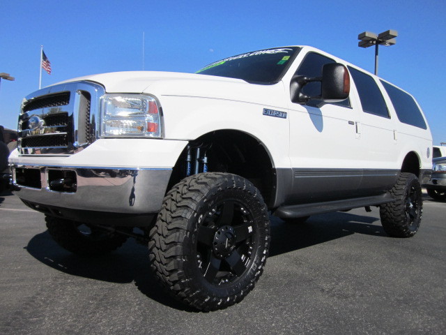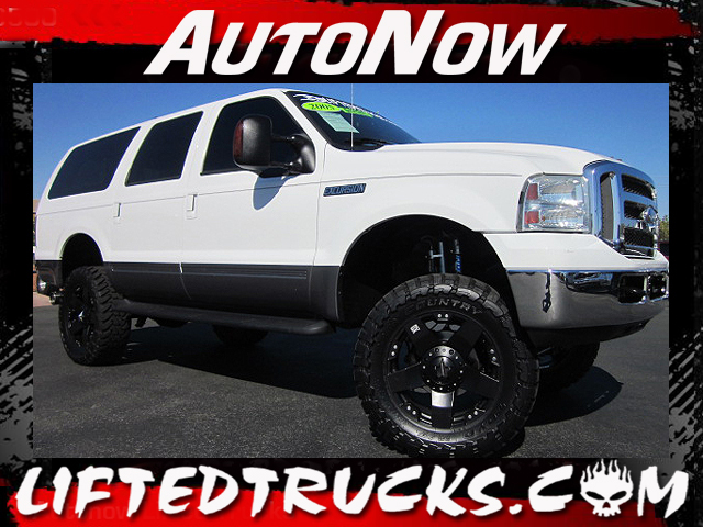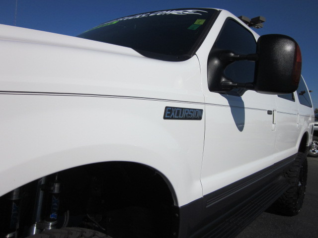 2005 FORD EXCURSION DIESEL 4X4 LIFTED SUV FOR SALE. FEATURING A PROFESSIONALLY INSTALED OFF ROAD SUSPENSION LIFT, 35 INCH TOYO M/T TIRES ON KMC ROCKSTAR BLACK WHEELS, DUAL FOX SHOX WITH RESERVOIRS, POWERSTROKE TURBO DIESEL V8 MOTOR WITH A BANKS HIGH FLOW AIR INTAKE, BANKS HIGH FLOW EXHAUST, 86K MILES, GRAY LEATHER INTERIOR, DVD WITH FOLD DOWN TV SCREEN, IN SEAT SCREENS, 6 DISC CD STEREO, POWER SEATS, POWER PEDALS, 3RD ROW SEAT, REAR A/C, TOW PKG., RUNNING BOARDS, TINT, EXTREMELY CLEAN, READY FOR ADVENTURE!