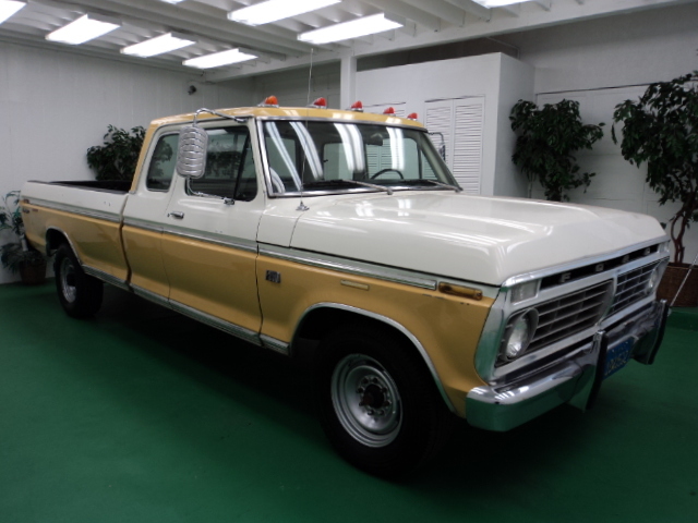 1974 FORD F250 SUPERCAB PICK UP TRUCK. Hello. You are bidding on a 1974 FORD F250 SUPERCAB PICK UP NO RESERVE AUCTION. The power train consists of a V-8, 360 CID, engine coupled to an Automatic transmission which drive the rear wheels. This F250 drives and handles well. There is no hesitation while accelerating and when the brakes are applied the vehicle stops in a straight line. The original exterior two tone finish shows minor scratches/chip(see photos).  The Truck still bears its original blue and yellow California License plates indicating where it has been all or most of its life. The entire undercarriage is rust free. This 1974 FORD F250 SUPER CAB comes equipped with Power Steering, Power Breaks, Air conditioning (not functioning/all equipment present). The internal seating surfaces, carpets and headliner are in good condition free of rips/tears or stains. All four tires have about 40% of thread life remaining. Due to the age of the vehicle and a five digit odometer Rpm Lenders in unable to verify the reading of 53,302 miles registered on the odometer as actual or correct. At Rpm Lenders we work very hard to accurately describe our vehicles through text descriptions and elaborate photos. When you purchase a pre-owned vehicle it is not a new vehicle. Any used vehicle can have normal wear and blemishes. Before placing a bid please read the descriptions thoroughly and view all pictures Please read our TERMS of sale bellow. NO RESERVE AUCTION will sell to high bidder. Good luck and happy bidding.