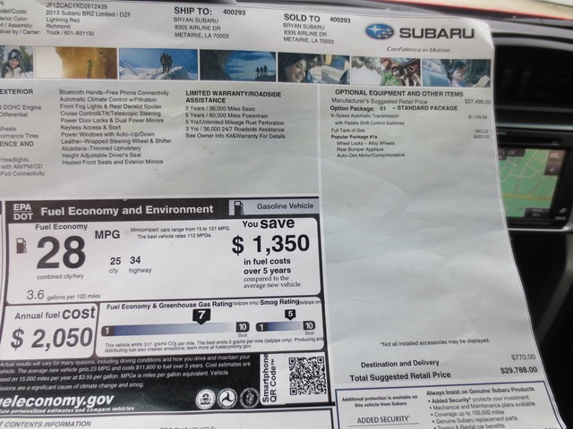 The BRZ is our Rear Wheel Drive sports coupe and the "Limited" is the fully-loaded trim.