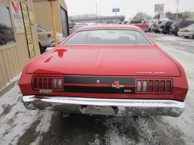 1972 DODGE DART DEMON -- DOCUMENTED BY A BROADCAST SHEET WITH CORRECT CODE 29 VIN NUMBER --REBUILT 340 CUBIC INCH HIGH OUTPUT V8 WITH A 727 TORQUE FLITE AUTOMATIC AND 8 3/4 SURE GRIP POSI REAR END -- COMPLETE METICULOUS RESTORATION FINISHED IN 2013 -- GEORGEOUS NEW CORRECT CODE E5 BRIGHT RED PAINT -- BEAUTIFUL INTERIOR --ONLY 70904 MILES -- THIS CAR IS AS NEAR PERFECT A HIGH QUALITY DRIVER AS YOU WILL EVER FIND !!!!!!Visit DJ Auto Sales online at www.djautoonline.com to see more pictures of this vehicle or call us at (319)390-1100 today to schedule your test drive.