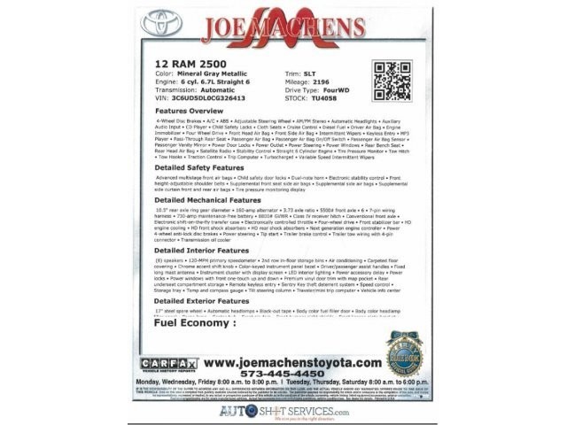 2012 Dodge Ram 2500 SLT - LOW MILES, 1 Owner, 4WD, NO UREA