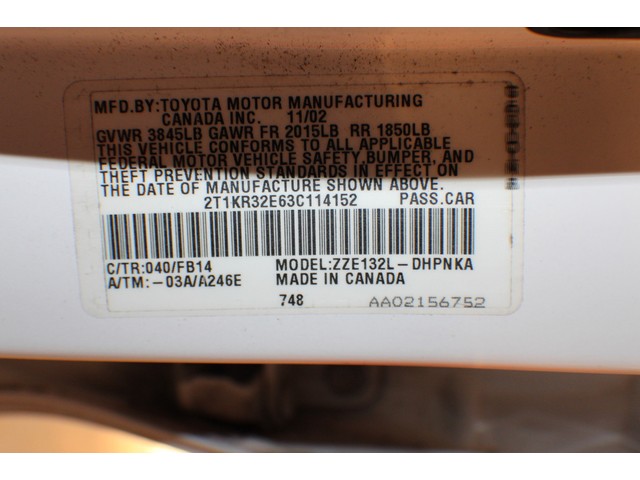 2003 Toyota Matrix XR. White exterior, Gray interior. Factory Sunroof! TONS of cargo space, hatch/trunk area is an easy to clean hard surface, and includes cargo nets. Perfect for sandy/muddy sporting equipment, landscaping materials, pets, or leaky groceries.