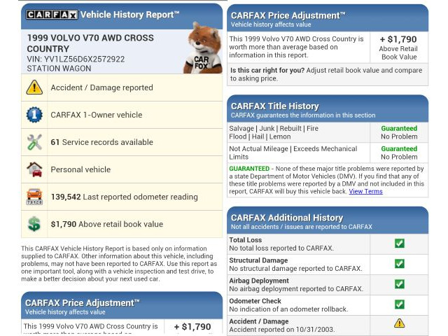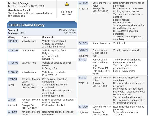 This vehicle was very well maintained with regular service from Volvo as indicated in its History report.