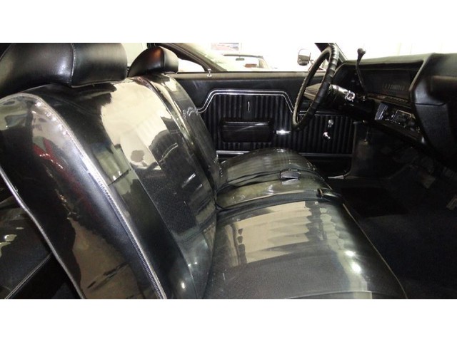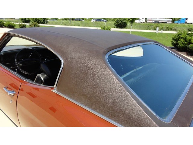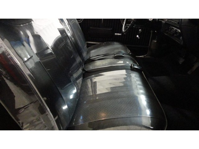 It has a very rare dark brown vinyl top. The original black cloth seats are like new and have had clear plastic covers protecting them since the car was new.