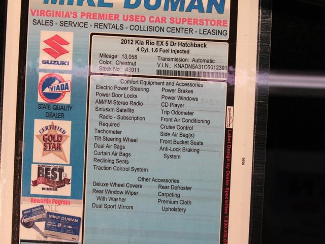 Rio 13,058 miles Great MPG Satellite Radio 1.6L Sporty Power Doors Windows CLEAN