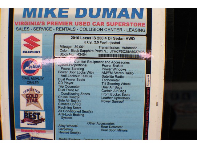 2010 Lexus IS 250 LOW 39,093 miles! Heated leather seats, factory sunroof, sport model with paddle shifters on steering wheel. Super fun to drive!
