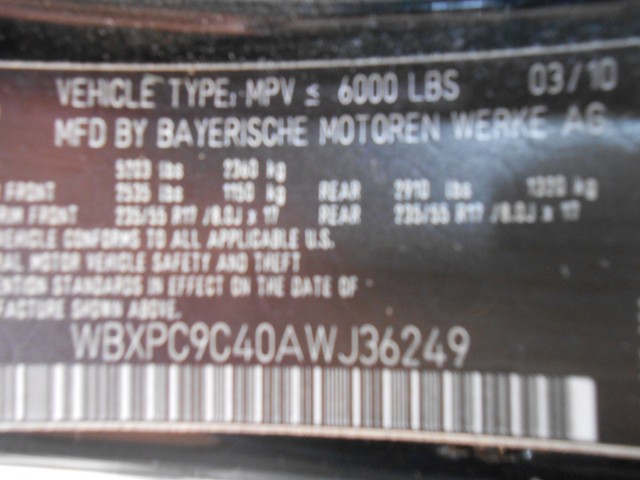 2010 BMW X3 3.0i X-drive  NO RESERVE Salvage Rebuildable Lite interior fire
