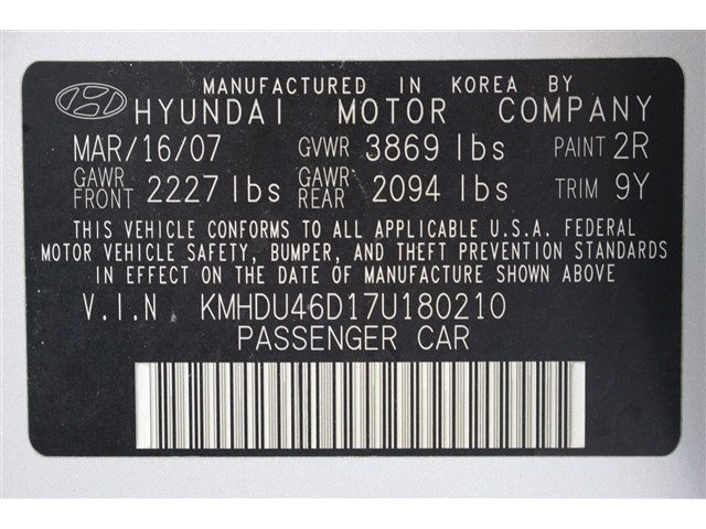 When was the last time you smiled as you turned the ignition key? Feel it again with this charming-looking 2007 Hyundai Elantra. J.D. Power and Associates gave the 2007 Elantra 4.5 out of 5 Power Circles for Overall Initial Quality Design. It is nicely equipped with features such as 4D Sedan, 4-Speed Automatic with Overdrive, Silver, Gray w/Cloth Seat Trim, Power Sunroof, 4-Wheel Disc Brakes, 4-Wheel Independent Suspension, 6 Speakers, 60/40 Split Fold-Down Rear Seat, ABS brakes, ABS w/EBD & 4-Wheel Disc Brakes, Active Front Head Restraints, Adjustable Head Restraints, Air Conditioning, AM/FM radio, Anti-whiplash front head restraints, Bumpers: body-color, CD player, Cruise Control, Driver & Front Passenger Airbags, Driver door bin, Driver vanity mirror, Dual front impact airbags, Dual front side impact airbags, Four wheel independent suspension, Front anti-roll bar, Front Bucket Seats, Front Center Armrest w/Storage, Front Cupholders, Front reading lights, Front Variable Intermittent Wipers, Heated door mirrors, Illuminated entry, Map Lights, Occupant sensing airbag, Overhead airbag, Overhead console, Panic alarm, Passenger door bin, Passenger vanity mirror, Power Door Locks, Power door mirrors, Power Heated Mirrors, Power steering, Power Windows, Power windows, Rear anti-roll bar, Rear Center Armrest, Rear seat center armrest, Rear window defroster, Remote keyless entry, Remote Keyless Entry System w/Alarm, Security system, Speed-sensing steering, Split folding rear seat, Tachometer, Tilt Steering Wheel, Tilt steering wheel, Tinted Glass, and Variably intermittent wipers. A deal like this on such an outstanding car, with such low miles, does not come up for grabs very often, so you better act fast. New Car Test Drive said it ...offers lots of interior space for the class, a high level of standard safety equipment, and a strong warranty...