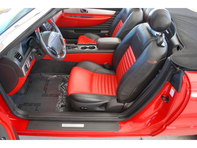 The exterior is finished in a smooth and glossy Torch Red Clearcoat complemented with a Black soft top convertible. Exterior matching Porthole-window hardtop included. The standard interior color is black, but with the optional interior appearance package the seats, steering wheel and shift knob are finished in an exterior matching Torch Red. The interior color package combined with the Torch Red exterior and soft top are what sets this beautiful T-Bird appart from the rest!!