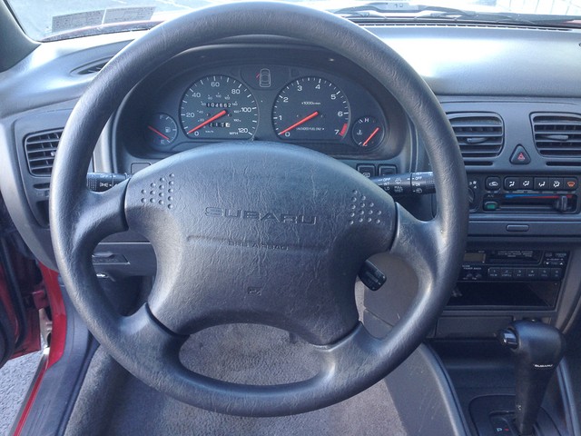 The burgundy exterior has been very well maintained.  Free from any major dents, dings, scratches or scrapes, you would never expect that it is a ’97.  The only real flaws to the exterior is the couple marks on the rear bumper and a VERY small bit of rust at the very front of the driver side rocker, both of which can clearly be seen in our selection of photos.  The 15” alloys are not scratched or curbed and are fitted with a great set of Michelin Radial XW4’s size 205/70R15.  The gray cloth interior is also in the same great condition.  The seats are not ripped or stained, the dash is not cracked and the carpet is not torn.  All of the electronics are in proper working order as well.  This Legacy Outback is nicely equipped with many factory features such as power windows / mirrors /locks, AM/FM stereo, cassette, A/C, cruise control, roof rack, rear cargo area cover, rear cargo mat, and so much more!