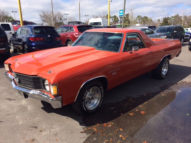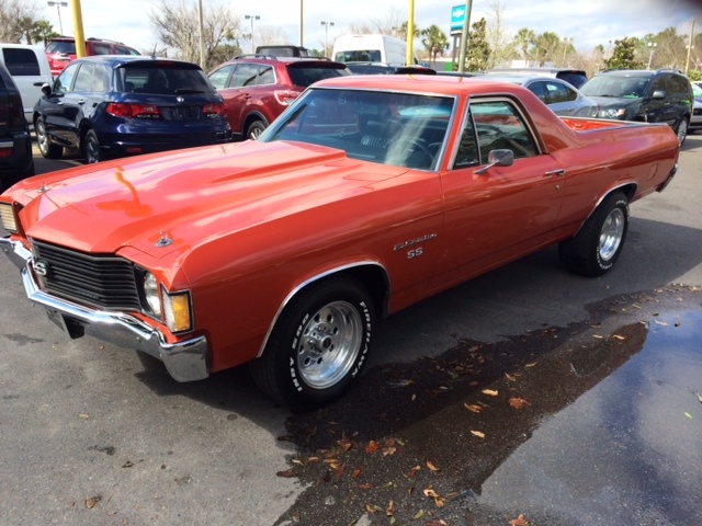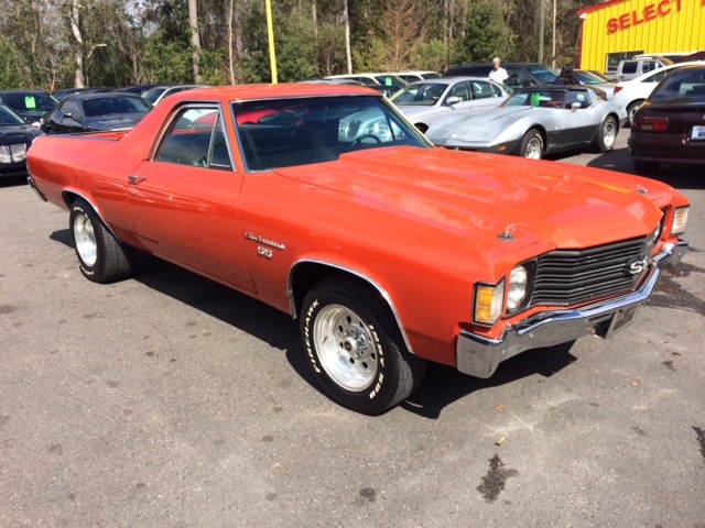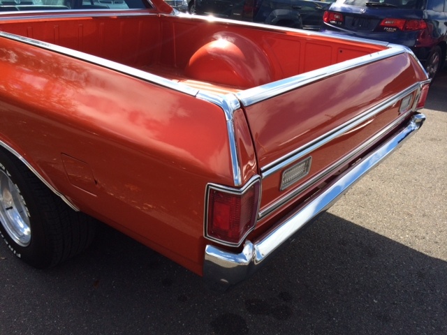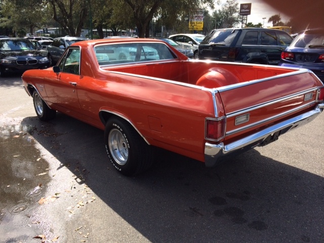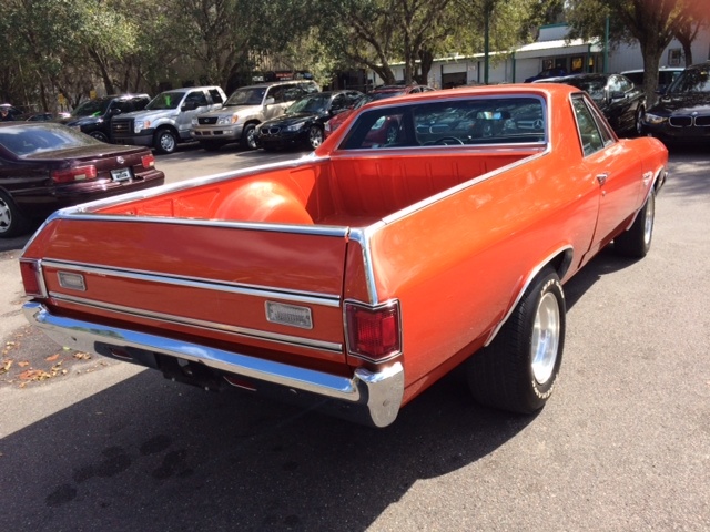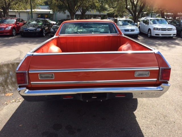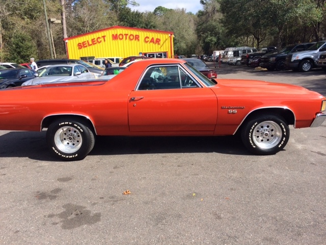 Underneath the car everything looks solid.  Nothing is rusting.  The paint looks shinny and deep orange with only a couple of spots of tiny bubbling. Interior is look great with not much fading on the carpet.  We refinished the carpeting behind the back seats.  The car simply drives strong.  The mild cam sound smooth and not obnoxious.  When you go through the gears the EL CAMINO opens up nicely with the 454 and the 400 TURBO TRANS. WE DON”T CHARGE DEALER FEE’S or ADMSINTRATION FEE’S I welcome any questions that you might have on value of car or conditions. It is always easier to contact me directly at (352)874-6387.  Keep scrolling down for, About Select Motor Car, and Pictures.  Don’t wait for the auction to end: call me right now.