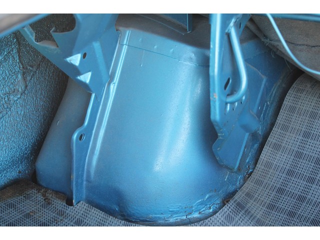 This is a very solid car with no rust or rot.  The paint is intact and shines nicely but is starting to show its age.  There is one small dent on the trim piece above the drivers rear wheel well.  The floors, trunk pan, quarter panels, frame rails and exhaust are all solid.  As you can see from the photos the original wheels were replaced with Craiger S/S wheels, which sit on 215/75/14 cooper tires.
