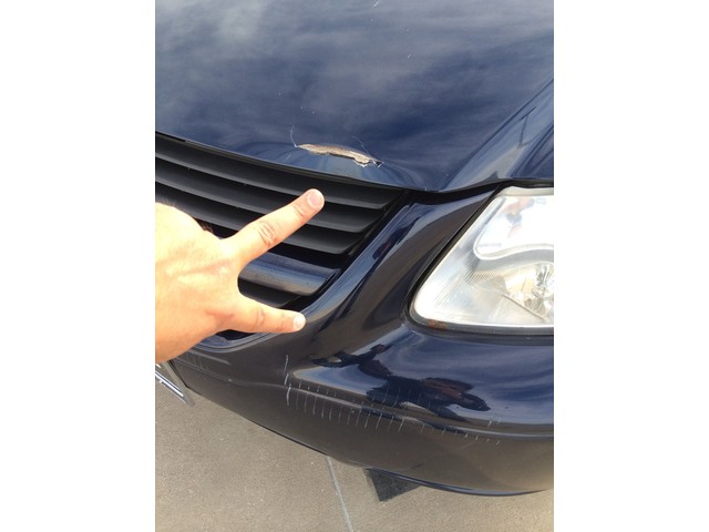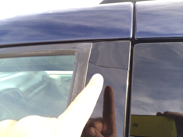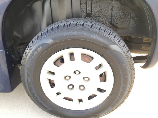 The van is in pretty good shape for its age.  On the outside, it has some scratches around and a small dent on the hood.  Also a cracked mirror housing and door panel.  The windshield has a small chip and the tires are in pretty good shape, almost new!! On the inside, there are no cuts or tears on the seats.  There are some minor stains on the carpet and loose overhead only by the sun visors.