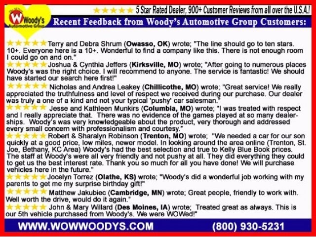 Woody's Automotive Group is the highest customer rated dealership in the greater Kansas City area.