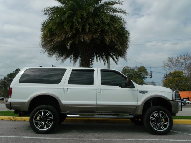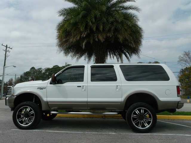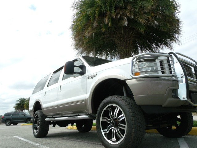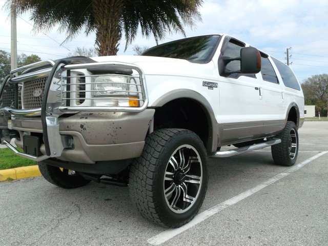 2004 Ford Excursion Eddie Bauer edition 6.0 turbo diesel 4x4. Two tone tan leather interior in excellent shape not rips or tears.  6” Lift sitting on NITTO ALL TERRIAN LT235/55/R22. It has been chipped with a tuner. Everything works as it should A/c is cold, heat is hot, automatic transmission shifts through all the gears smooth and the 4 wheel drive engages/disengages properly. There is NO KNOWN mechanical problems with this truck and no signs of it ever being exposed to the northern salted roads, ice or snow therefore it is RUST FREE. I have included a copy of this trucks FREE Carfax report. Please click the link provided and it will redirect you to the FREE Carfax report. It is LOADED with options like chrome side step rails, driver keypad entry, heavy duty tow package,  rear back up sensors, adjustable heated side power mirrors, power windows & locks, power driver & passenger seats, cruise control, heavy duty rubber floor mats, power adjustable pedals, 6 disc CD Player Am/FM  radio. It has 178k miles, but please look at all pictures of the exterior, interior, motor, undercarriage and Carfax history report so you can see how nice this truck really is. I am confident it will sell fast. With so many options, I know I have missed a few so please call me if you are wondering about something I did not list. Bid with confidence as Ashlyn Motors has been in business now for 10 years at the same location in Jacksonville, Florida and have over 600 positive transactions on EBay. We take our 100% feedback very seriously and hope you will consider this when making your next vehicle purchase. Ashlyn Motor’s has been awarded EBay Motors “Premier Seller Award” the last four years now 2009, 2010, 2011 and 2012. Jacksonville is only two hours from Orlando (Walt Disney World, Epcot, Universal Studios and SeaWorld). Buy a vehicle from Ashlyn and make it a family vacation you will remember for a lifetime! We are known for truck’s and have many people stop by from time to time just to see what we have. Our inventory turns fast and most of my trucks sell long before auction end. So if this is the truck for you