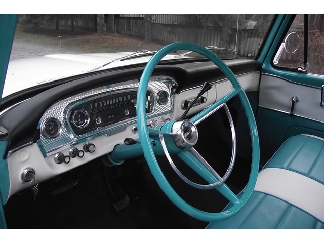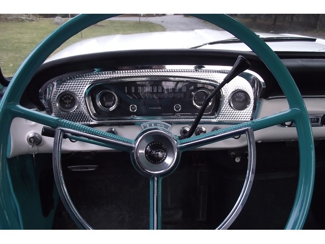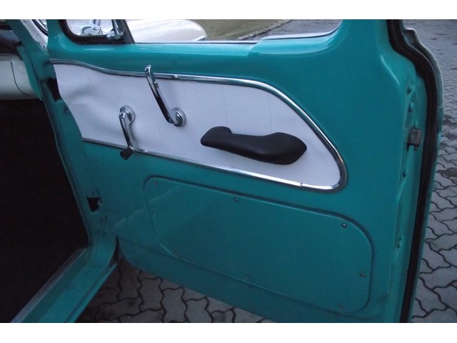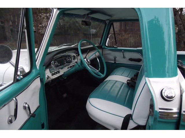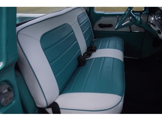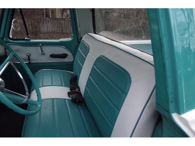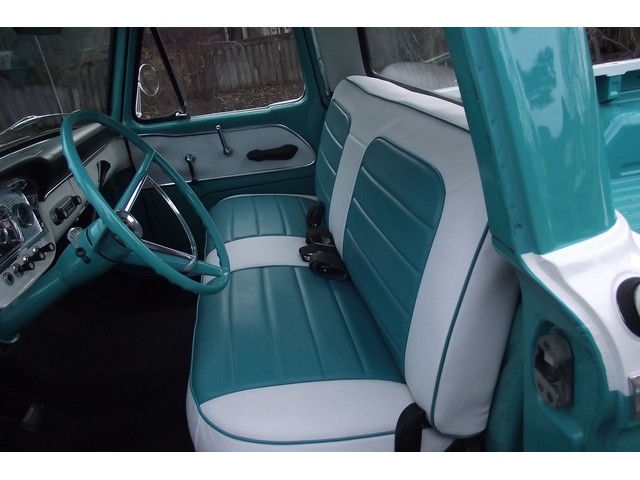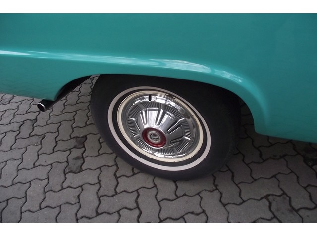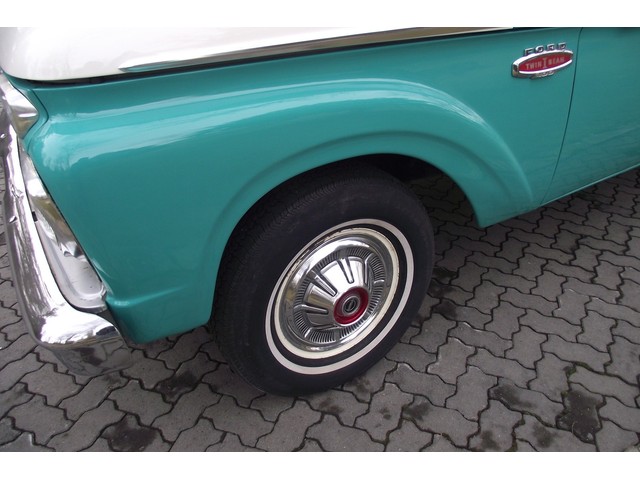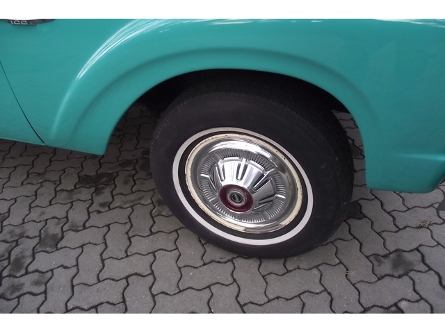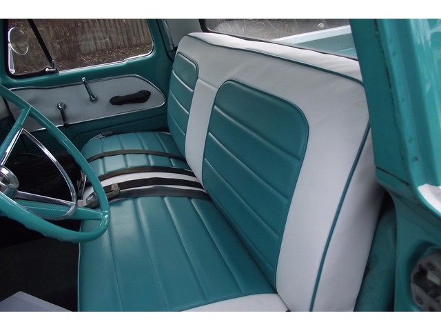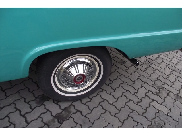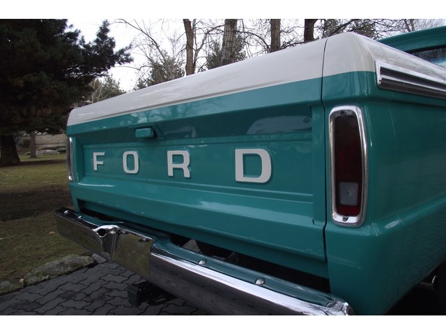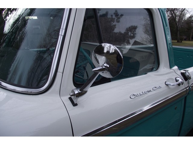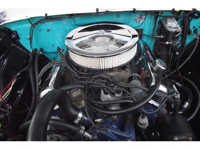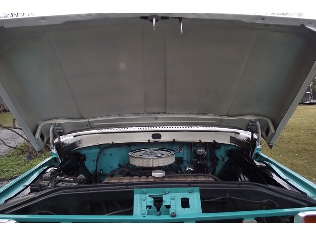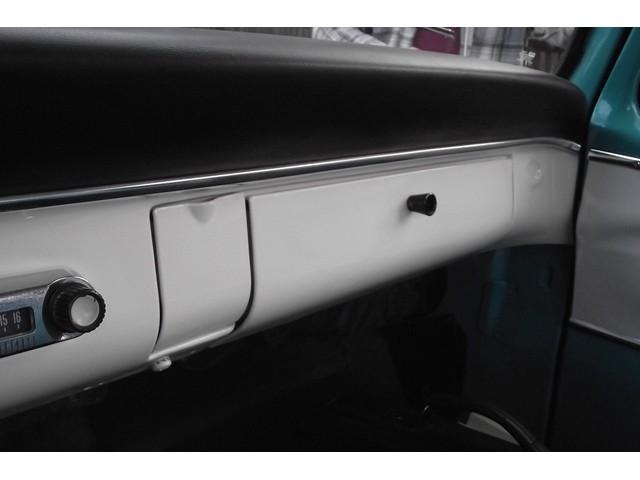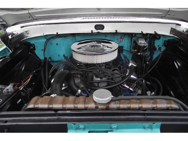 This Ford F150 Custom has original, STRONG, OPTIONAL code "Y" 352 CID V8 in it and it has been completely rebuilt and is running very well. The engine is backed by a smooth code "G" Three speed automatic transmission that was rebuilt with baby shift kit and a code "08" rear-end with 3:50 gears both of which function very well. The code "BM" Caribbean Turquoise and Wimbledon White vinyl interior is NEW and has the Custom Cab trim level, including a nice NEW Caribbean Turquoise and Wimbledon White vinyl bench seat that was redone to match the truck paint, NICE original dash and nice original dash pad, NICE original gauge cluster, nice original floors, nice Original headliner and Original re-covered color-matched sun visors, nice new Original style door panels and nice original steering wheel and horn ring. This truck is nicely equipped including power steering, factory heavy duty brakes and converted to discs on the front, factory gauge package, Original dual chrome exterior mirrors, good heater and defroster and three seat belts. It has the working Original AM Radio. This truck is a great running and wonderful looking Pickup. This Ford F100 1/2 Ton Custom Cab has GOOD looks and Great power as well ! These vehicles have an appreciative group of owners any of which would be pleased to own this one. The suspension and drive line are nice and in good working order as is the electrical system.