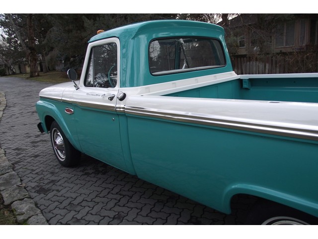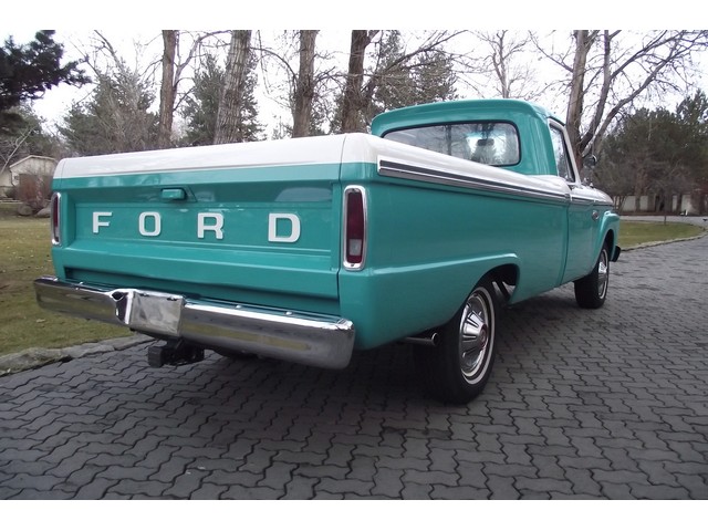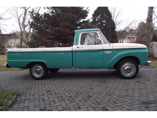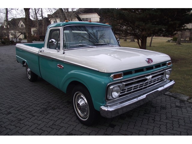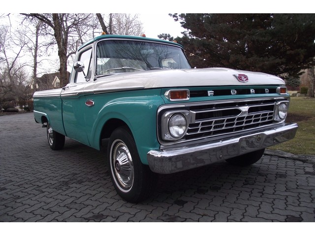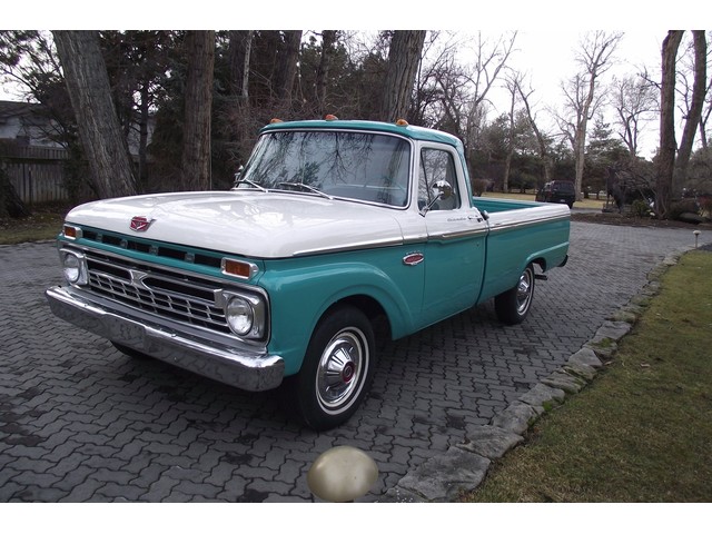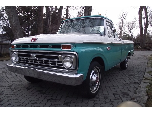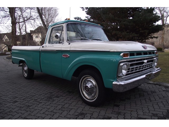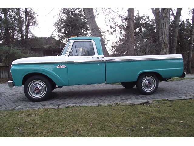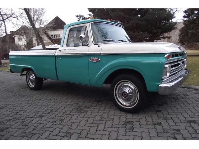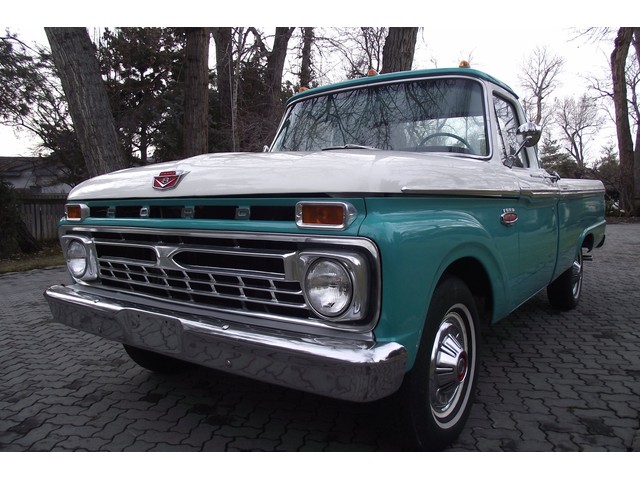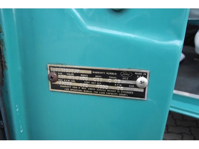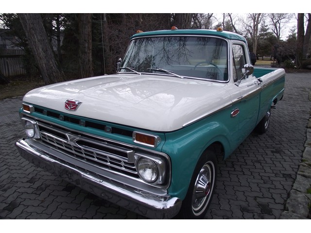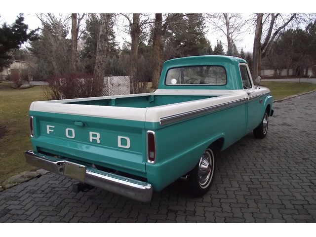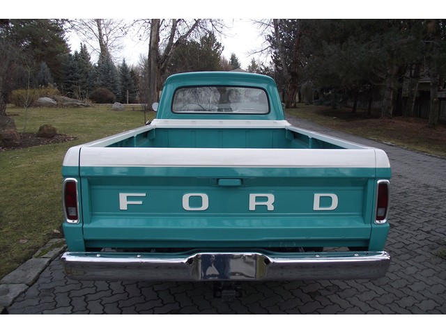 This F100 Custom Cab is a great investment opportunity and it is priced right! This Classic Truck is in good condition from top to bottom and from front to back. It will not disappoint someone looking for a clean example of a sought after and hard to find collector truck that is not seen at every day for sure. If you have been looking but cannot find a truck worthy of your hard-earned money look NO further because this is the one! The EYE POPPING BEAUTIFUL Original code "BM" Caribbean Turquoise and Wimbledon White base-coat clear-coat finish on this truck is new and is BEAUTIFUL and almost show quality showing a few small imperfections and is bright and shiny and looks Great as you can see in the picture above and the 100 ADDITIONAL PICTURES BELOW !! The inside of the bed was also repainted and looks great. The original exterior Custom Cab Trim Package including the original stainless steel grill, original badging and the original stainless steel body side moldings are all in good condition, and even the original Ford lenses are in great shape with no cracking or fading. The original chrome front bumper is nice and shiny. It has the original rear chrome bumper with a trailer plug and acceptor hitch. The suspension has all been re-done including adding air bags in the rear for towing. The previous owner's plan was to completely restore the truck to tow his Classic Chris Craft “Super Sport” boat with it. Check out the Nice stock wheels with nice Original Ford wheel covers and the Nice Whitewall Steel Belted radial tires boy does this combination look OUTSTANDING on this truck and gives it that “Stock Original” look! This vehicle is in GREAT mechanical condition and it runs and drives very well. I drove this truck over 100 miles in town and on the freeway. This truck runs and drives like new, no squeaks or rattles. The amount of looks and “thumbs-up” I get in this truck is equal to ANY car of truck I have ever owned, this is one good looking rig. This vehicle is solid with respect to the overall mechanical condition as well as the overall cosmetic impression. I looked underneath and there was only some minor surface rust on the undercarriage and bottom of the rear bumper that you would expect from normal use. I also included 100 photos below. This is a nice, DRY Oregon Truck.