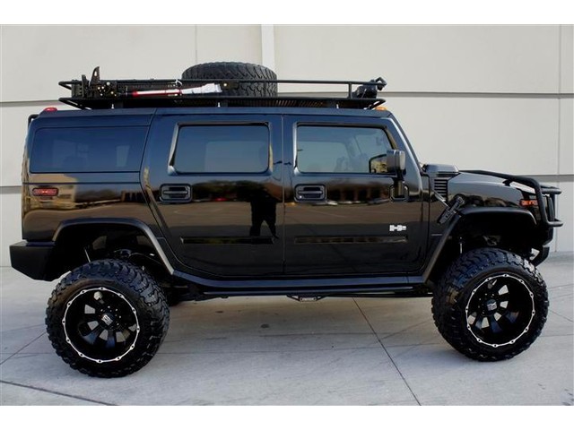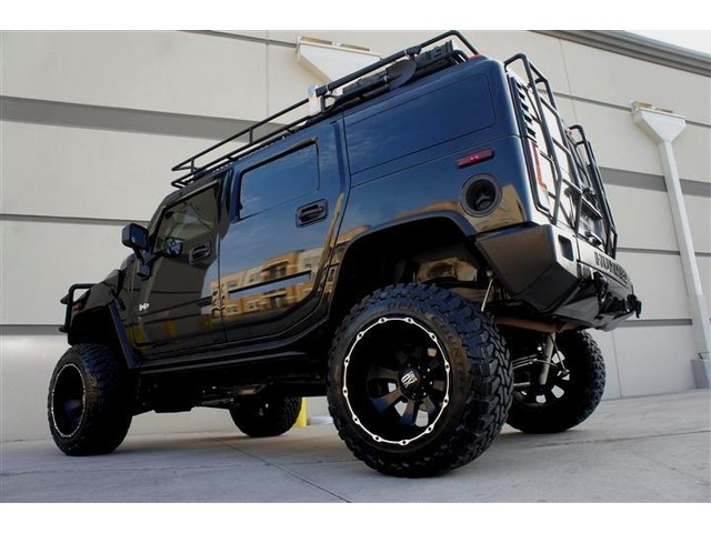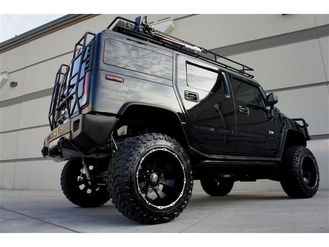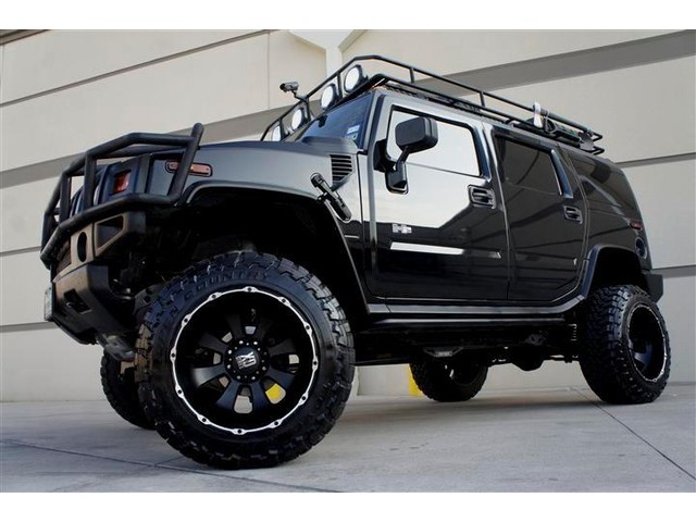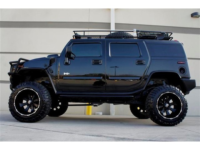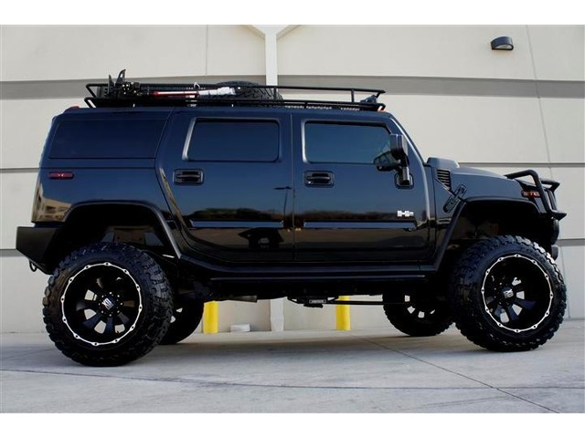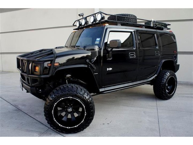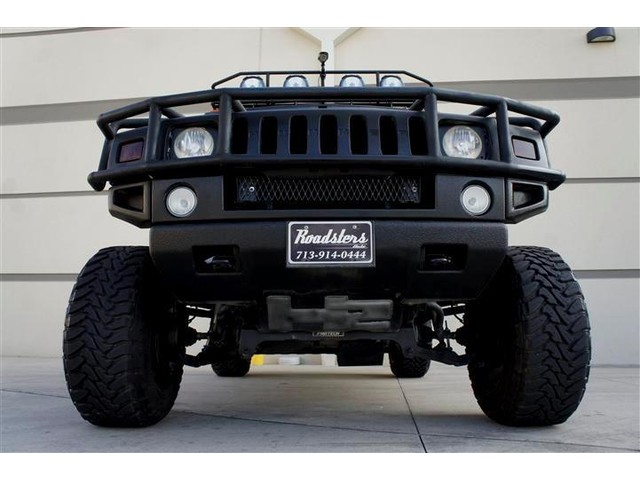 ROADSTERS AUTO IS PROUD TO PRESENT FOR SALE THIS ONE OF A KIND AND VERY RARE TO FIND CUSTOM LIFTED 2003 HUMMER H2 4WD! THIS DREAM SUV IS FEATURING BLACK COLOR EXTERIOR ON A GRAY COLOR LEATHER INTERIOR! WITH 144K ORIGINAL MILES IT LOOKS CLEAN INSIDE AND OUT. IT COMES FULLY LOADED WITH OPTIONS SUCH AS DUAL FRONT AND SIDE AIRBAGS, POWER MEMORY SEATS, FOURWAY HEATED SEATS,  POWER WINDOWS AND LOCKS, FACTORY SIX DISK CD CHANGER, 2 HEADREST TVS AND DVD PLAYER, NIGHT VISION REAR AND FRONT VIEW CAMERAS WITH A CUSTOM MONITOR, ONSTAR SYSTEM, HOMELINK, CUSTOM SAFARI ROOF BASKET, CUSTOM 6 TO 8 INCHES FABTECH SUSPENSION LIFT KIT, CUSTOM 22 INCH BLACK XD SERIES WHEELS WITH BIG 37 INCH TOYO TIRES AND MANY MORE(SEE THE PICTURES FOR MORE DETAILS)! ALL THE OPTIONS FUNCTION ACCORDINGLY! THE POWERFUL 8 CYCLES 6.0L ENGINE RUNS LIKE NEW AND THE 4WD AUTOMATIC TRANSMISSION SHIFTS SMOOTHLY INTO GEARS AND PROVIDES SOME GOOD POWER! THE BLACK COLOR EXTERIOR IS IN GOOD AND HEALTHY CONDITION AND THE GRAY LEATHER INTERIOR HAS BEEN KEPT CLEAN! THE OVERALL CONDITION OF THIS HUMMER IS GOOD AND IT IS PRICED TO SELL QUICK, SO CALL MIKE NOW AT 713-914-0444 TO BUY IT NOW!
