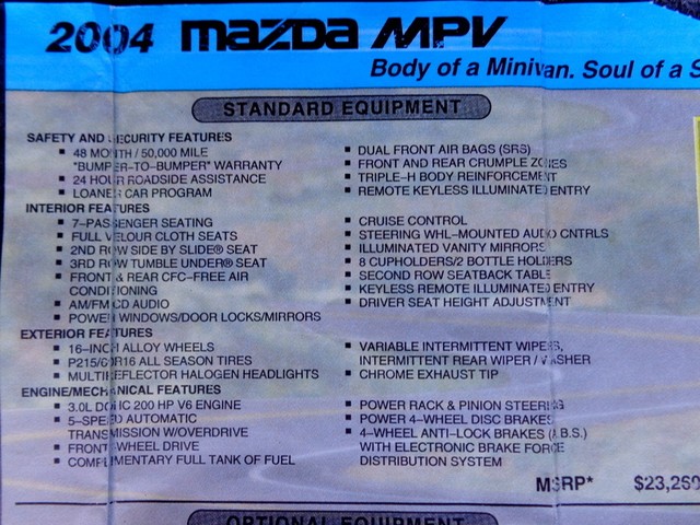 I'm here to help! Print and bring my SmartBuyer Checklist when you go to test drive this 2004 Mazda MPV Wagon.