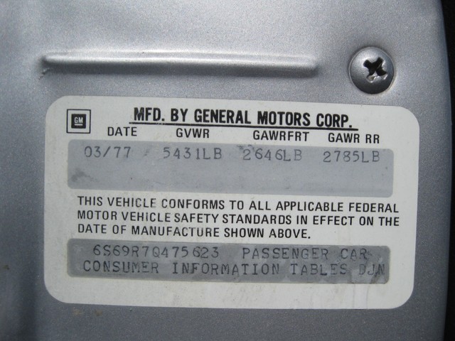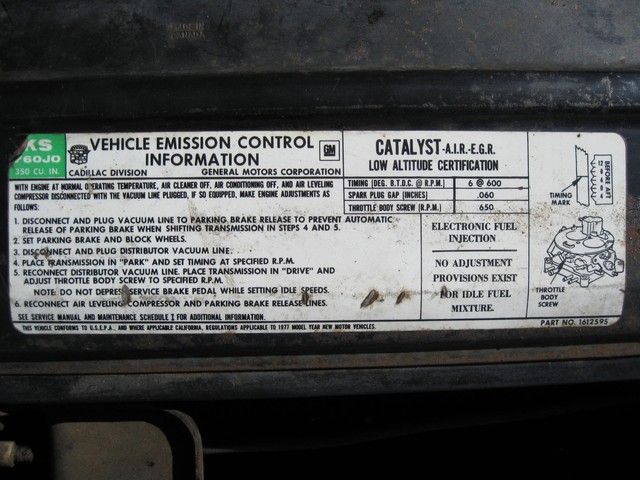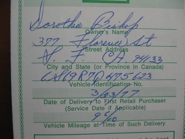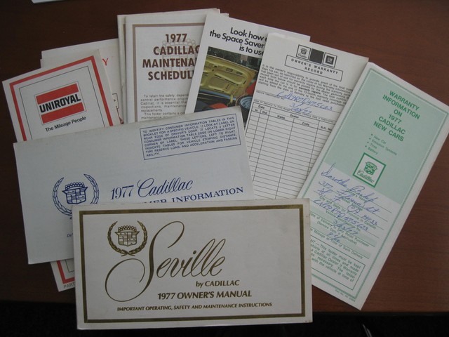 She sports a nearly new set of radial tires on steel wheels with locking Cadillac wire wheel covers and rear air shocks. There is a current Virginia Safety Inspection sticker on the windshield. The car comes with all its original manuals, wheel cover lock tool and several tubes of touch-up paint. The glovebox also contains a pouch of 1970's maps from the San Francisco/Carmel area of California.