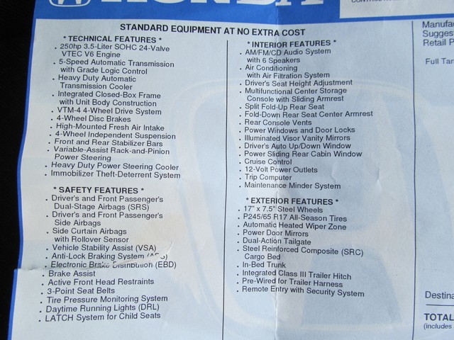 • Engine: 6 Cylinder, 3.5 VTEC L