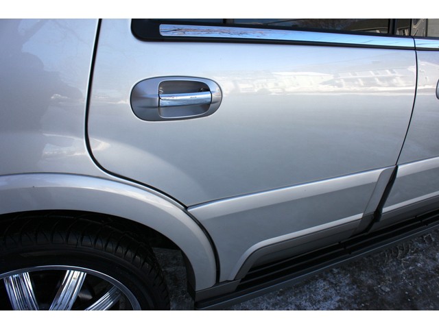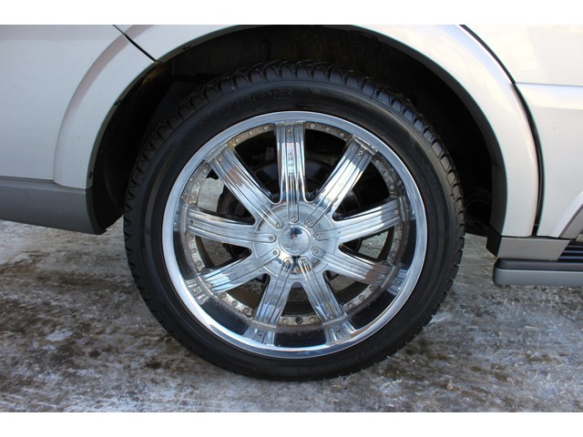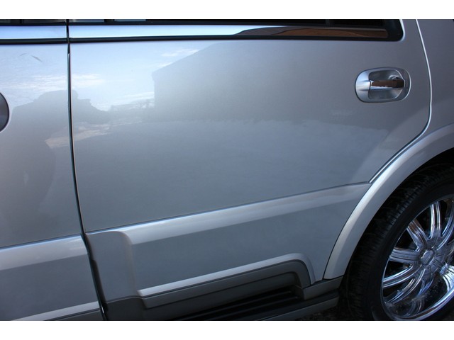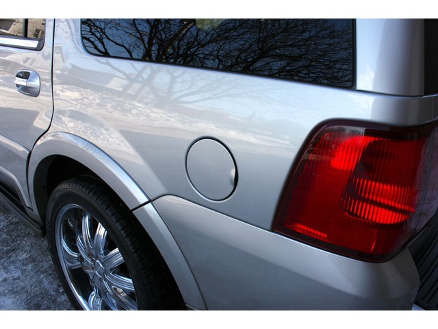This Lincoln has a Silver exterior with a nice shine. Some exterior features included are 22 Inch Chrome Wheels, Power Moonroof, Rear Privacy Glass, Heated Power Folding Door Mirrors, Rear Wiper, Power Light Gate, Fog Lamps, Powered Running Boards, Moonroof, Towing Package and so much more. The paint on this Lincoln is in great condition. Being a used vehicle expect some minor scratches. There are a couple surface marks on the tail gate (pictured below). Also the wheels have some oxidation (pictured below).